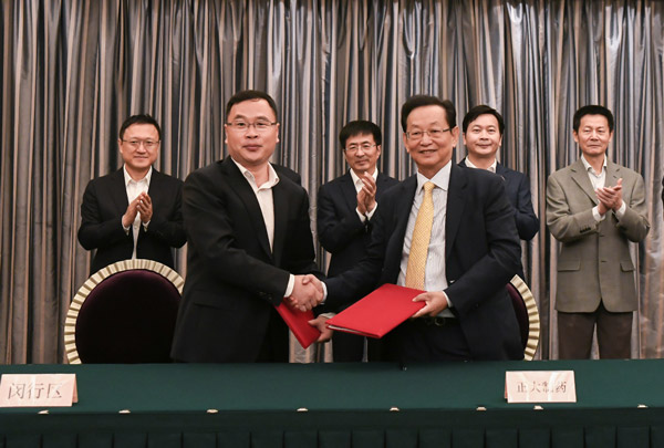 6月11日上午,中國生物制藥有限公司在滬與黃浦、閔行兩區簽約,宣布將中國總部及下屬企業正大天晴藥業集團全球研發總部落戶上海。在上海市委常委、副市長吳清和正大制藥集團總裁鄭翔玲的共同見證下,正大制藥集團董事長謝炳,中國生物制藥執行董事、正大天晴藥業集團董事長謝承潤,分別與黃浦區、閔行區簽訂戰略合作協議。