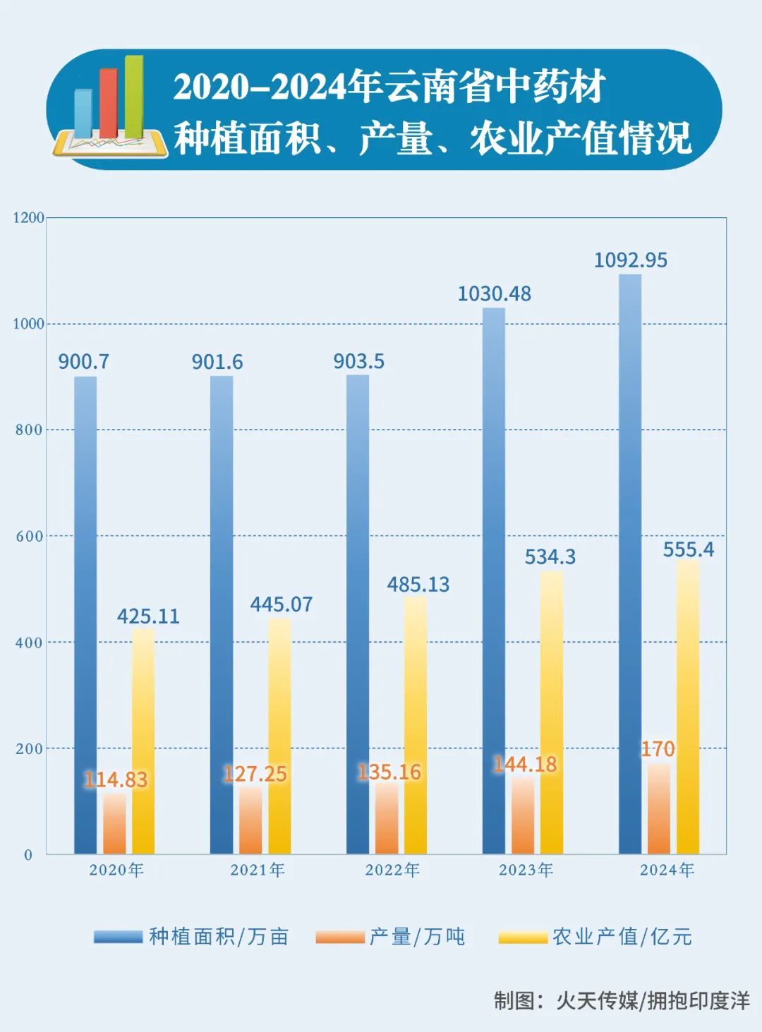 2024年,全省中藥材種植面積達1092萬畝,產量170萬噸,全產業鏈產值突破1800億元,種植面積、產量、農業產值均連續6年穩居全國第一,并逐步形成從道地產區、加工集群到創新終端的全鏈條體。